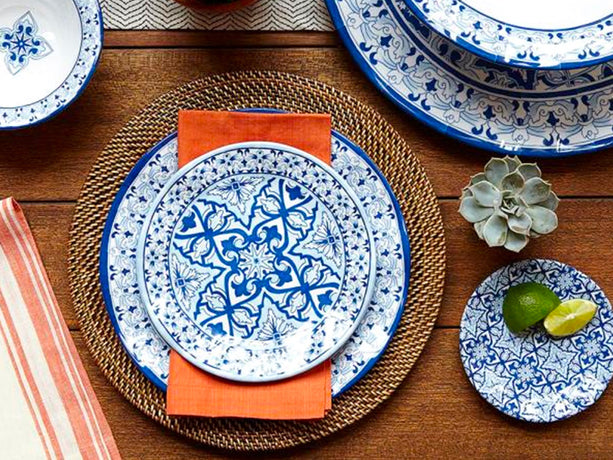 Inspired by Talavera de la Reina’s Spanish pottery tradition, the Talavera-patterned melamine tableware brightens up the tablescape with its gorgeous design and vivid blue tones. Each set has 8 plates and is perfect for enjoying meals in every setting ranging from tropical gardens to weekend brunches.