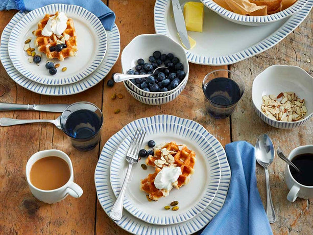 Start your mornings on a bright note with Sitio Stripe Indigo Mug Set. Crafted from ceramic, the mug is a part of Juliska’s Wanderlust Collection. Embossed with pastel blue stripes, the mug brings a tropical flair to teatime.
