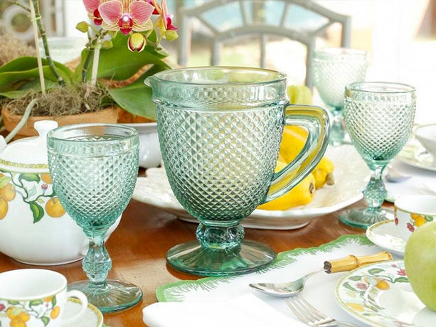 Boasting a timeless stately look, the Bicos Bicolor Goblet with Colored Top is a lovely summer decor item to have at both formal and informal parties. Available in 4 regal shades, the goblet has an imperial glass silhouette beautified with intriguing patterns and a truly royal design that gives a majestic touch to ordinary gatherings.