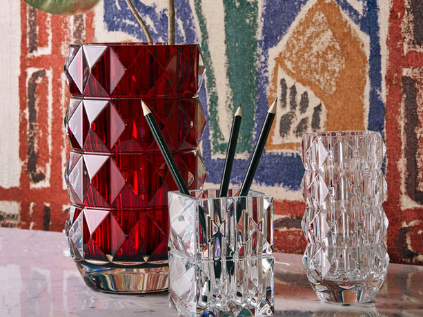 Bring Egyptian vibes to your safe haven with Baccarat’s Louxor Round Vase Tall – an ornate piece that blends the vogue factor with traditional structures quite skillfully. The vase features triangular patterns and angles reminiscent of Egyptian pyramids and their rich history. It is available in two alluring colors – a vibrant ruby red and a calming clear crystal.