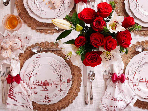 Encapsulating Christmas in all its glory, this beautiful place set is a perfect addition to your Christmas dinner table setting. In lovely shades of red, the plate has scenic illustrations of the holiday season that are not only great for enjoying your meals but also displaying as a piece of art.