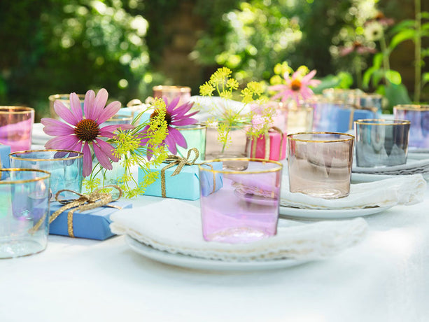 Rejuvenate your kitchen for spring with these pebbled vintage-inspired drinking glasses by Moser Glass. Whether entertaining guests or simply enjoying your favorite drink, these crystal glasses are the perfect match for your other spring home decor. Inspired by natural stone and ice and crafted with fine quality crystal featuring pebbled engravings. The Pebbles Double Old-Fashioned Glass by Moser Glass is available in a wide range of colors including blue, purple, clear white, yellow, green, ocean green, black, red, and orange. Perfect spring colors to liven up your table setting.