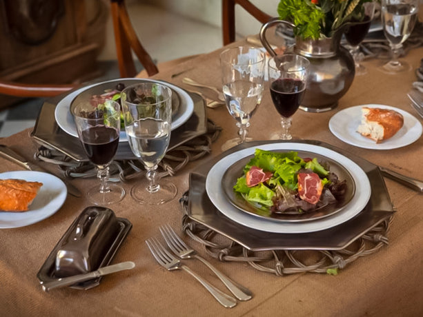 Lustrous, durable, and possessing an undeniable ancient charm, entertain your guests in elegance with Pewter dinnerware.