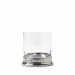 The double old-fashioned glass set features a sturdy wide-ringed pewter base and a chic cylindrical shape, making it a priceless addition to modern barware.