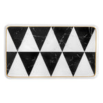The combination between porcelain and drawings inspired by the noble marble of Carrara, a very refined, geometric approach, creates the illusion that each piece of the set is interchangeable.