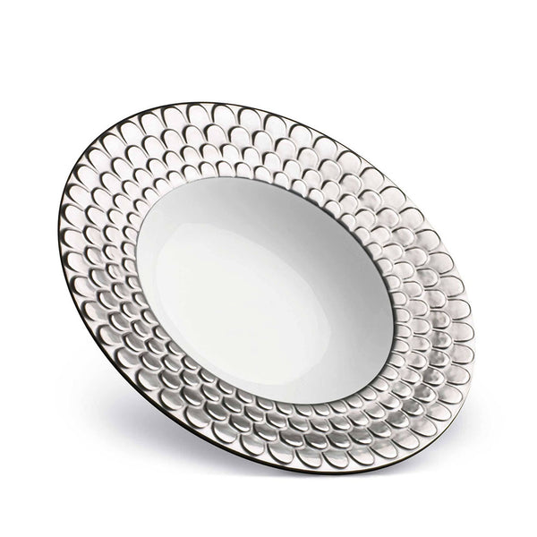 Coordinate this Aegean Soup Plate by L'Objet with matching soup bowls. Made from porcelain, the plate comes in 3 assorted patterns - gold, white & silver.