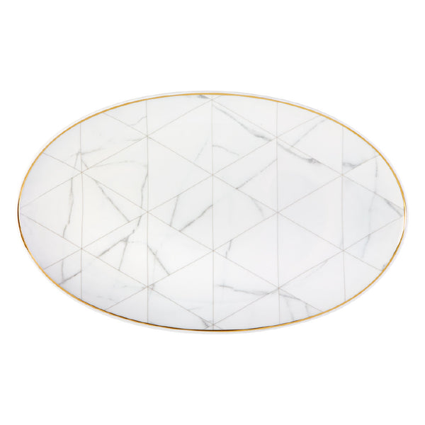 The elegant Carrara Large Oval Platter Set flaunts a radiant porcelain body beautified with marble patterns to enrich every tablescape with its beauty.