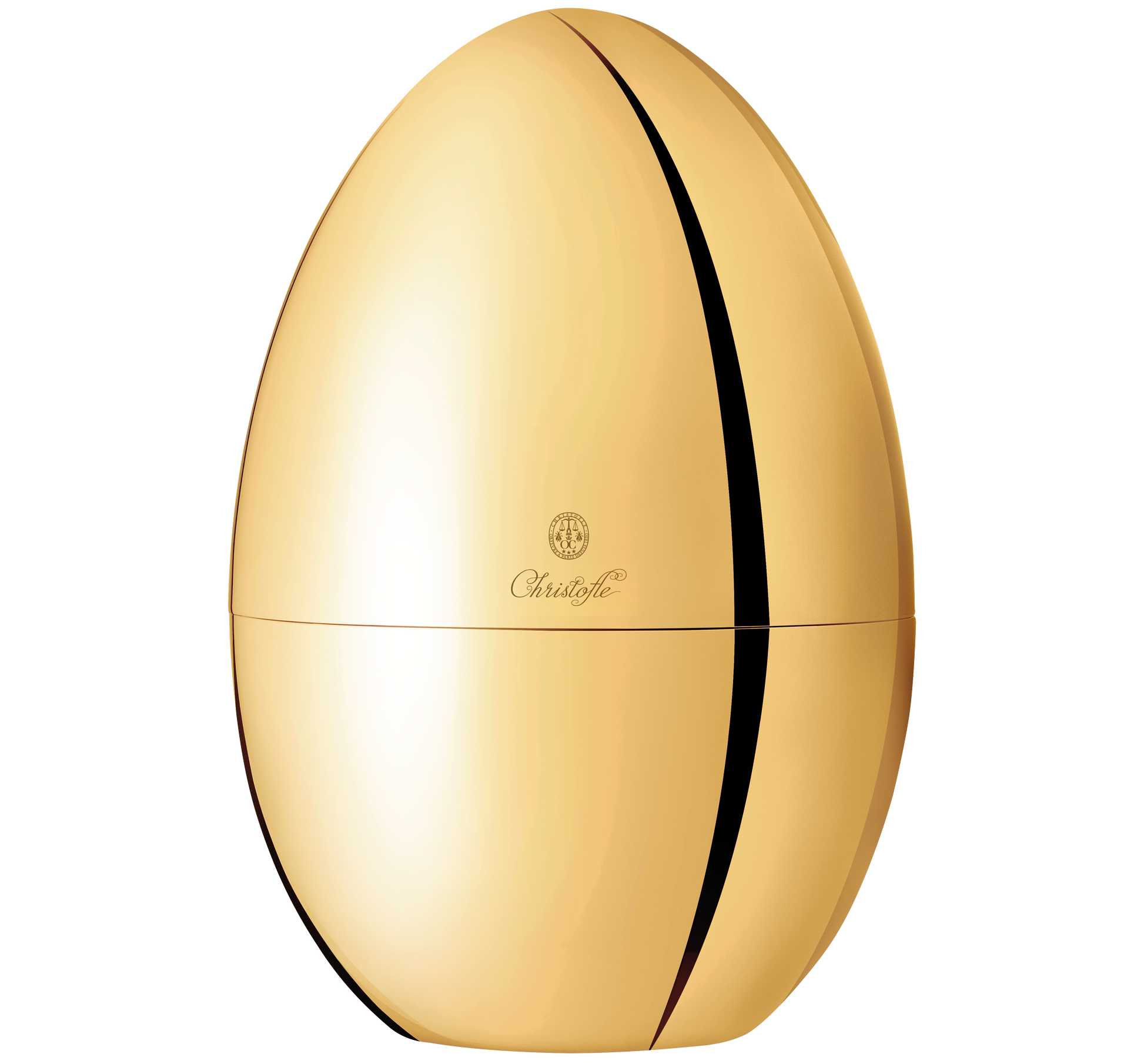 This MOOD brings a 24-carat gold touch to its egg-shaped case and flatware pieces.