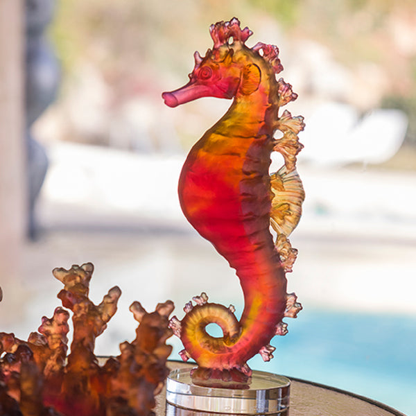 Celebrate the untroubled and exotic beauty of the ocean in the ambitious design and astounding patterns of the Seahorse Mer de Corail.